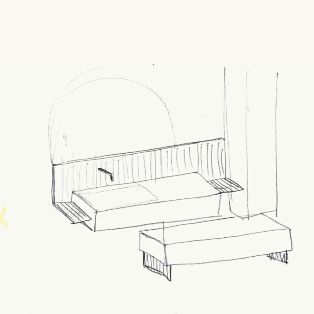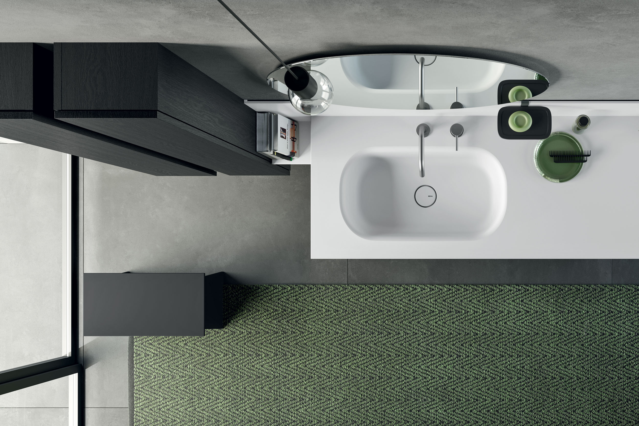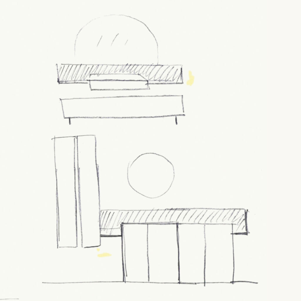 Una collezione basata sul contrasto armonico creato dall’accosto di pieni e vuoti, volumi contenitori e mensole leggere, note e pause, proprio come in una partitura.