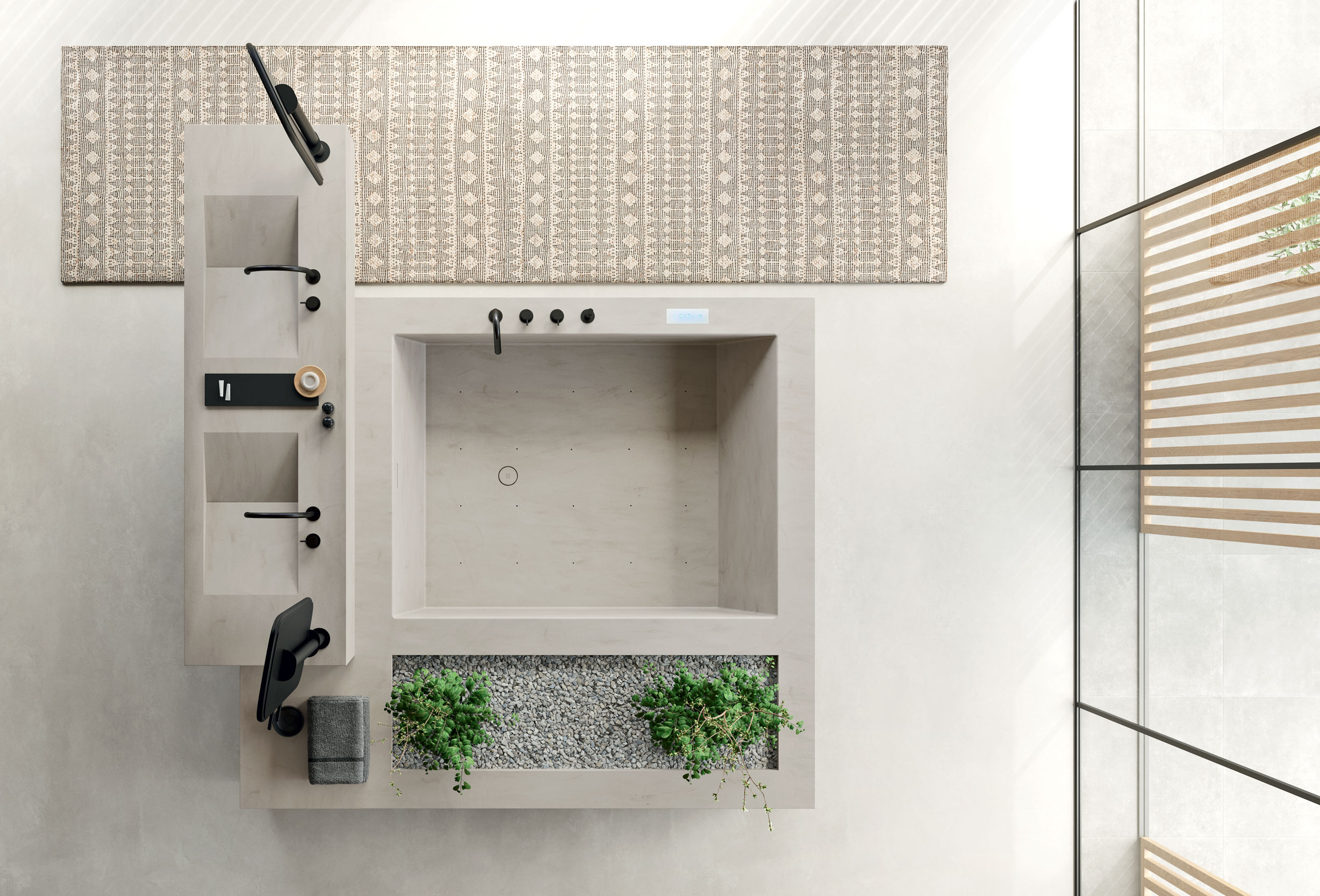 Un materiale versatile dalle notevoli proprietà tecniche che si arricchisce di effetti materici che riproducono la bellezza della pietra naturale: una possibilità che può influire sull'impatto estetico della stanza.