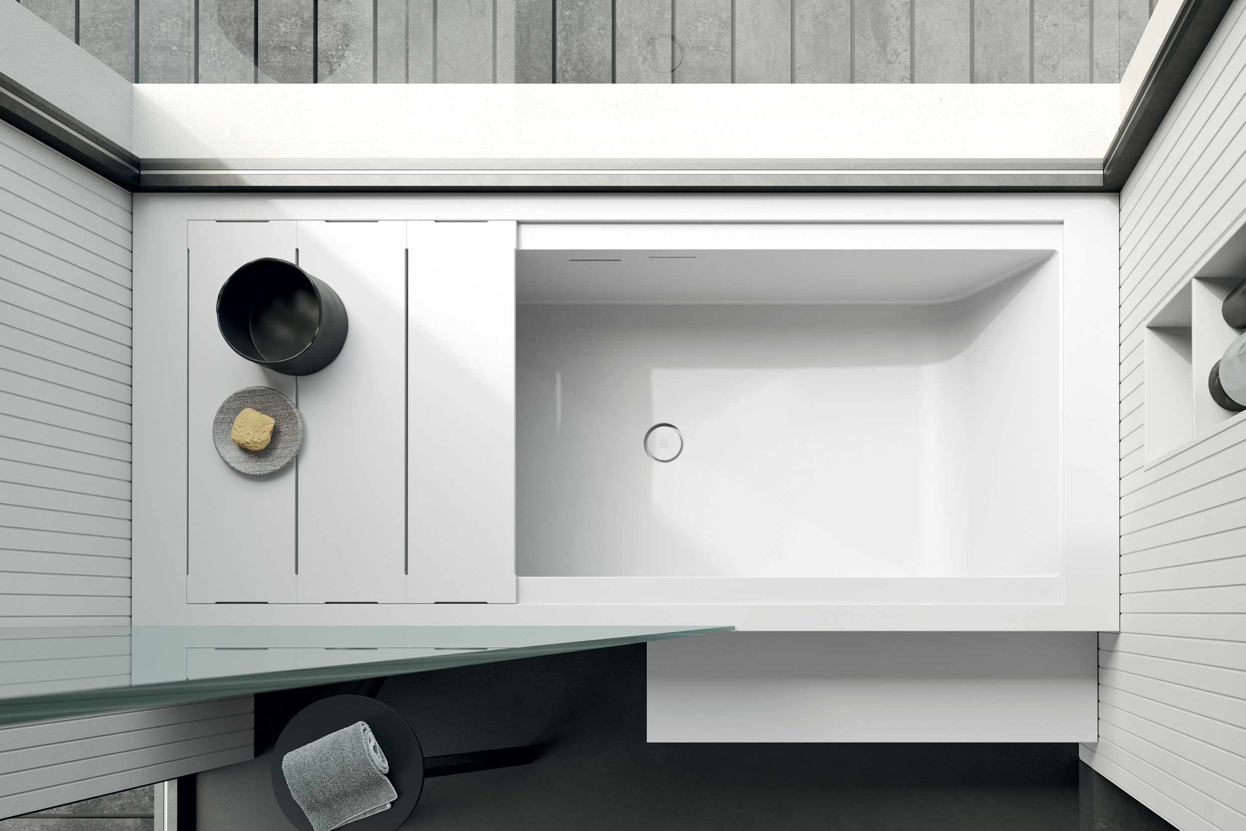 Modelli standard o personalizzati, adattabili all'installazione o al posizionamento in ogni stanza, vasche che migliorano l'esperienza di immersione, dotate di accessori e funzioni attentamente calibrate per soddisfare le preferenze individuali, come sedute interne, rubinetteria nascosta o con bocca di erogazione integrata, cassetti e librerie. Disponibili anche in formati mini e maxi, per ospitare una o due persone, con sedute o gradini, garantendo una perfetta esperienza di relax.