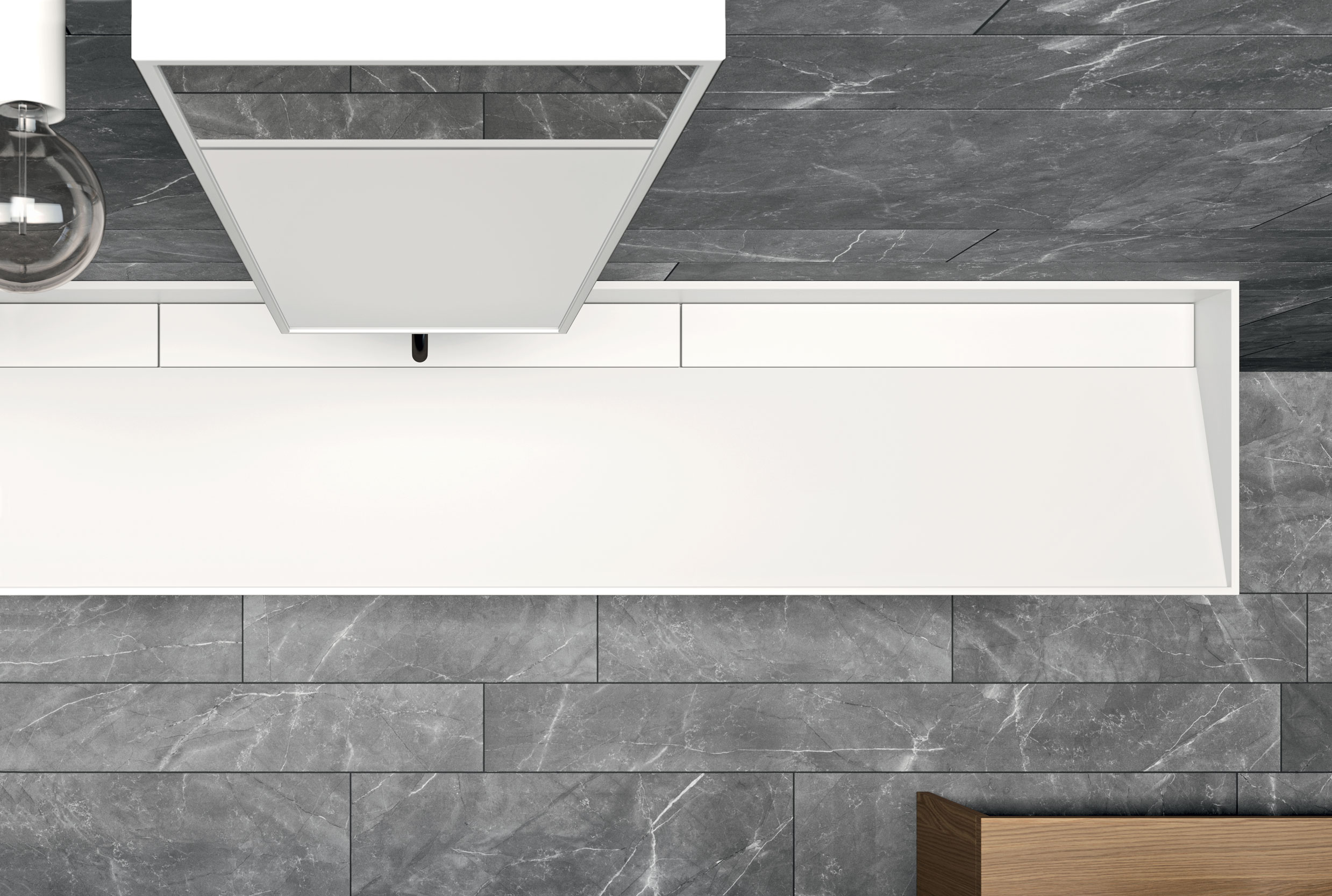 Prime is part of a universal program that extends to all elements furnishing the bathroom, such as washbasins, bathtubs, shower trays, accessories and coverings, using Corian® in 12 colors as a common material, suitable for maintaining visual and functional continuity in the environment.