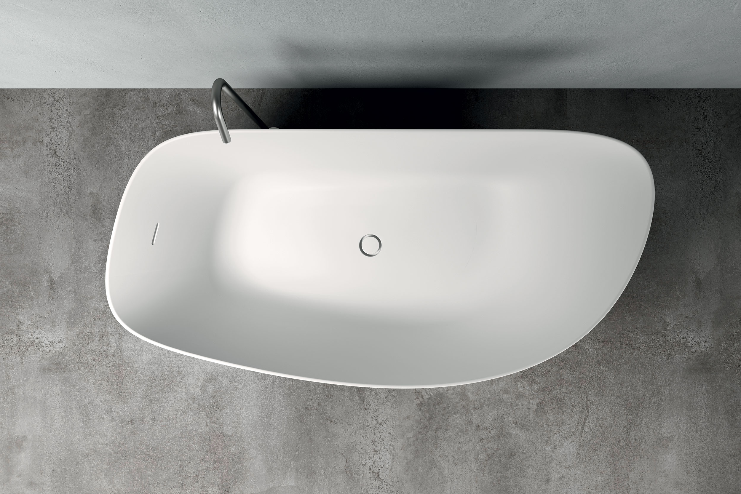 Fonte est une baignoire aux formes douces qui fait de l’asymétrie sa caractéristique distinctive : elle présente un rebord frontal abaissé pour faciliter l’entrée dans la baignoire, et un côté plus large conçu pour accueillir confortablement la zone des épaules. En plus de la version au centre de la pièce, il existe également le modèle avec étagère pour loger la robinetterie sur le plan. Pour compléter l’aménagement et apporter de la chaleur à l’espace, il y a des accessoires en frêne tels que l’étagère pour le bord de baignoire, les bancs et les paniers à linge.