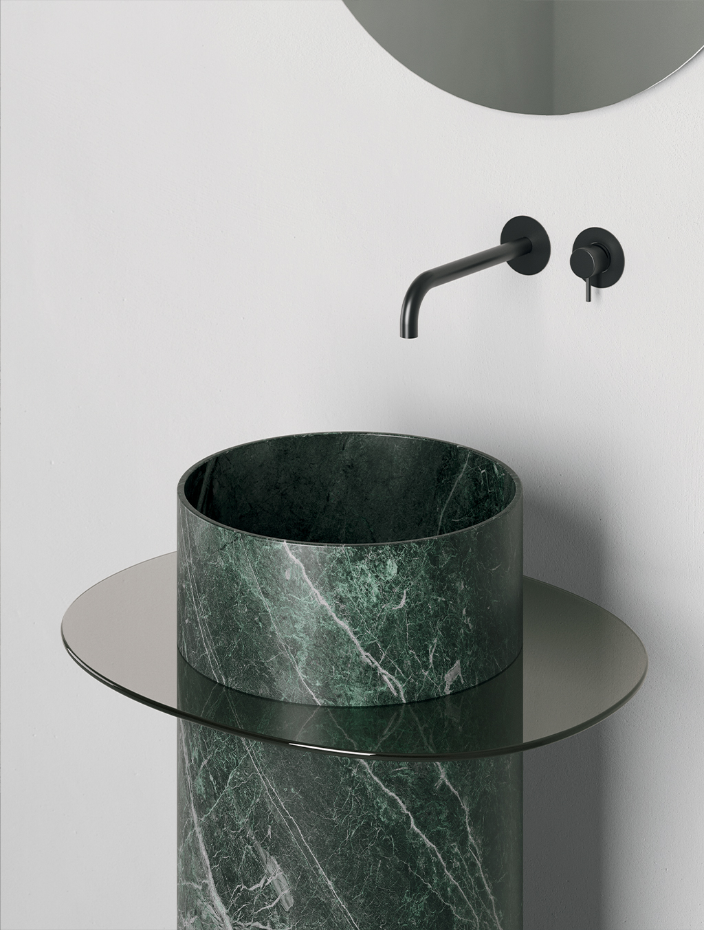 Récompensé par l’Archiproducts Design Award 2022, Discovolante naît du désir de créer, à travers quelques traits, un objet au charme essentiel et à la praticité discrète. Le plateau entourant le lavabo, en plus de sa fonction pratique de soutien aux activités quotidiennes, devient un signe distinctif, traçant une forme semblable à un disque volant, d’où il tire son nom. Le choix de matériaux tels que le Corian®, le marbre et le verre est pensé pour valoriser la relation entre les éléments qui le composent. Un accessoire dédié est le porte-serviettes qui ajoute une note fonctionnelle à l’élément scénographique.