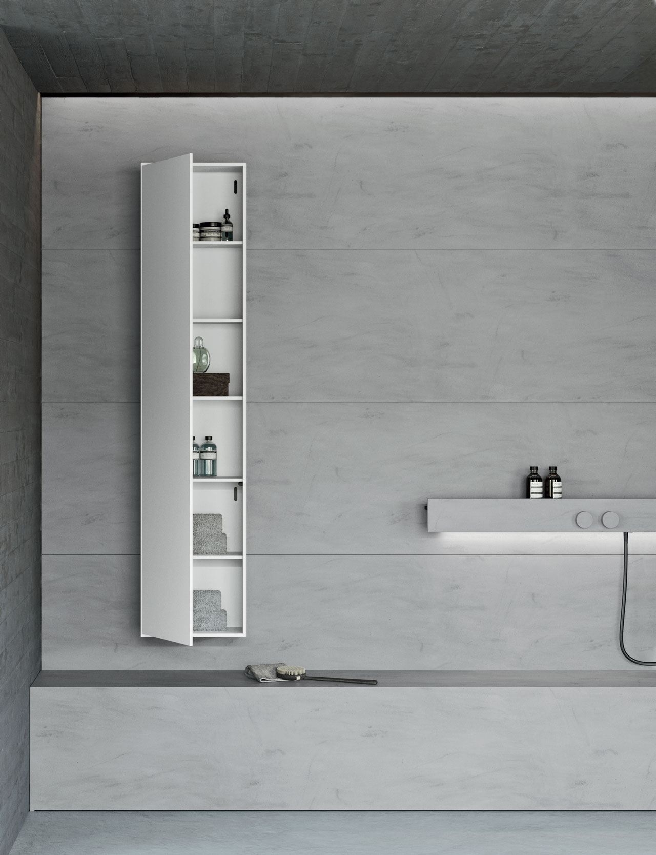 Ergo.23 è parte di un programma universale che si estende a tutti gli elementi che arredano la stanza da bagno, come lavabi, vasche, piatti doccia, accessori e rivestimenti utilizzando il Corian® in 12 colori come materiale comune, adatto a mantenere una continuità visiva e funzionale nell’ambiente.