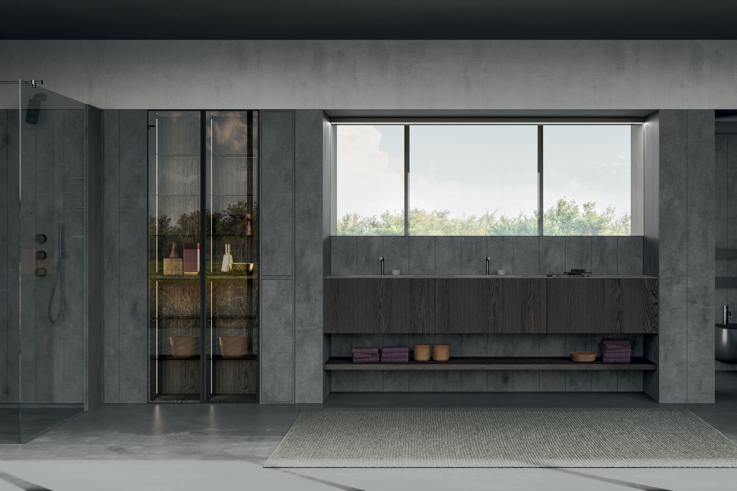 Unico è parte di un programma universale che si estende a tutti gli elementi che arredano la stanza da bagno, come lavabi, vasche, piatti doccia, accessori e rivestimenti utilizzando il Corian® in 12 colori come materiale comune, adatto a mantenere una continuità visiva e funzionale nell’ambiente.