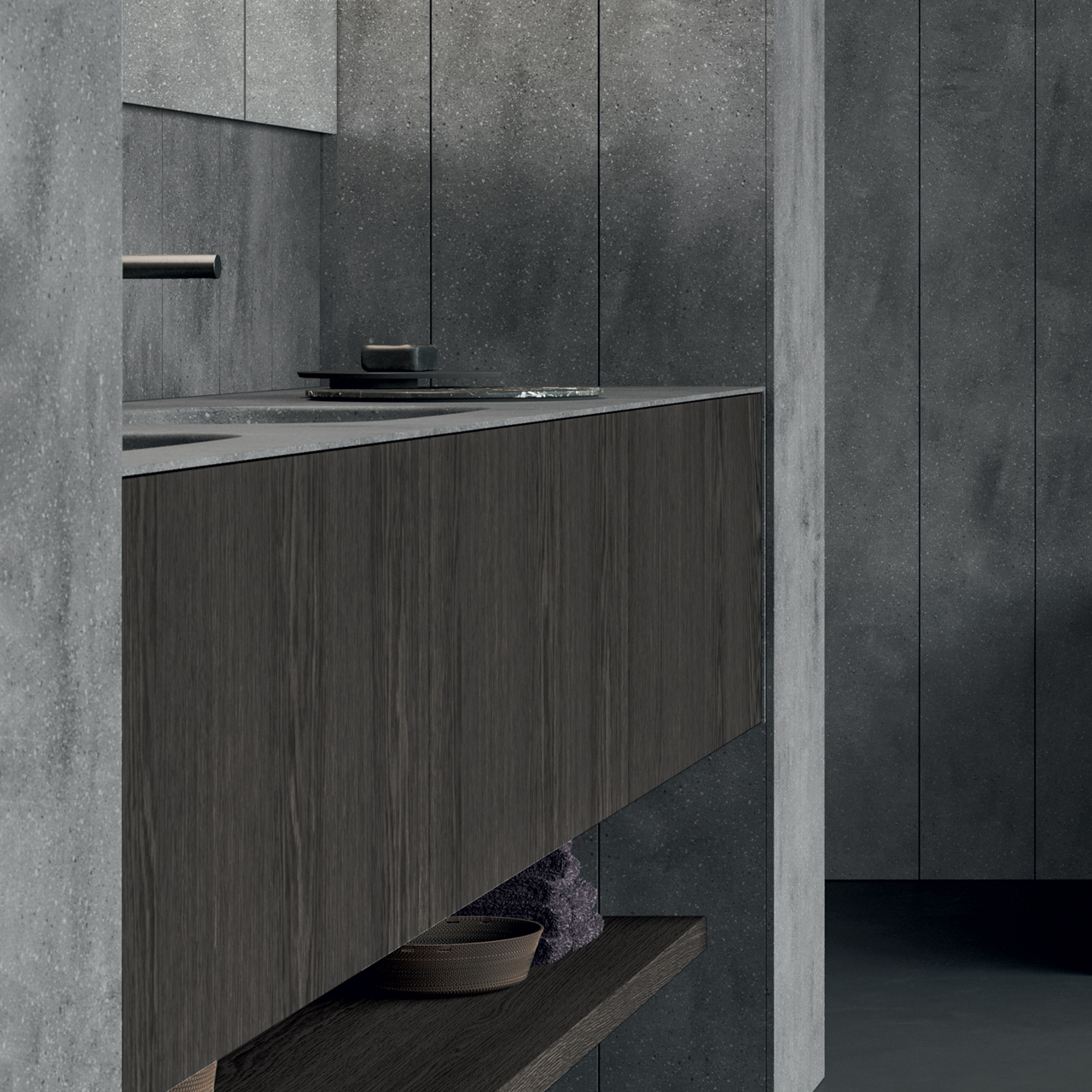 I mobili Unico sono caratterizzati da una struttura interamente realizzata in Corian® che offre un aspetto uniforme e senza giunzioni visibili. Top e fianchi sottili di spessore 6mm risultano un unico elemento e offrono la possibilità di combinare colori diversi rispetto ai frontali dei cassetti push-pull, disponibili anche in legno. La collezione propone 4 tipologie di lavabo integrato e offre la possibilità di scegliere tra le configurazioni standard presenti a catalogo, oppure può essere realizzata su misura al centimetro per soddisfare ogni tipo di esigenza di progetto.