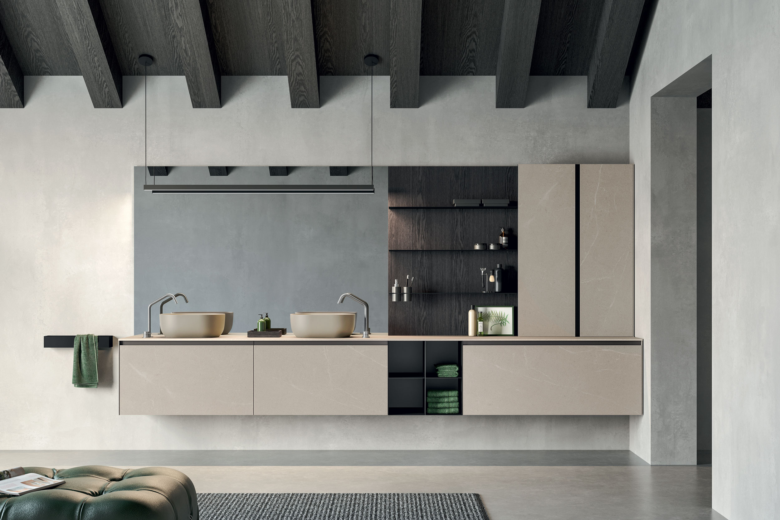 Un materiale che unisce bellezza a prestazioni tecniche quali altissima resistenza, durevolezza e versatilità. La tecnologia MDI parte dalla fusione di minerali purissimi ad alta temperatura e tramite il sistema “full digital” è in grado di ricreare perfettamente finiture, texture e venature tipiche della roccia, mantenendo la superficie morbida al tatto. Disponibile in diversi spessori, i top in Gres MDI possono ospitare lavabi integrati o in appoggio per permettere un’incredibile libertà compositiva.