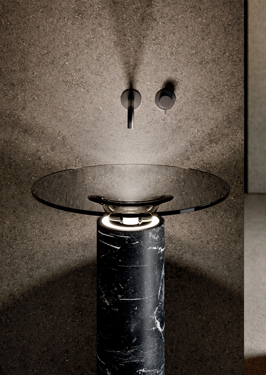 Espressione multimaterica firmata da Studio Batoni che unisce Pureglow, Corian® e marmo in un insieme raffinato ed equilibrato. La giuria internazionale ha apprezzato le sue caratteristiche distintive, come il raccordo tra colonna e calice, e l'illuminazione integrata che crea un’atmosfera accogliente, fungendo anche da luce di cortesia per l’ambiente.